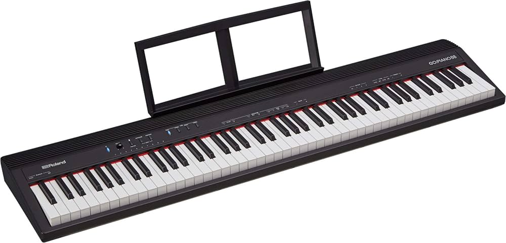The Roland GO:88P (GO:PIANO88) is a portable digital piano with 88 full-size keys and an easy-to-use design, perfect for beginners and music enthusiasts on the go.
