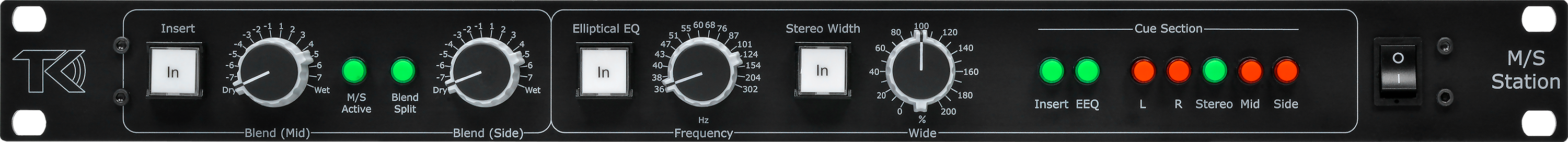Insert cue is a function to monitor the Mid or Side blend separately when the M/S function and Split blend is active. The signal is then sent directly from each blend control directly to the outputs, one at a time without passing the EEQ, Width or other gear if the M/S Station is used unlinked.